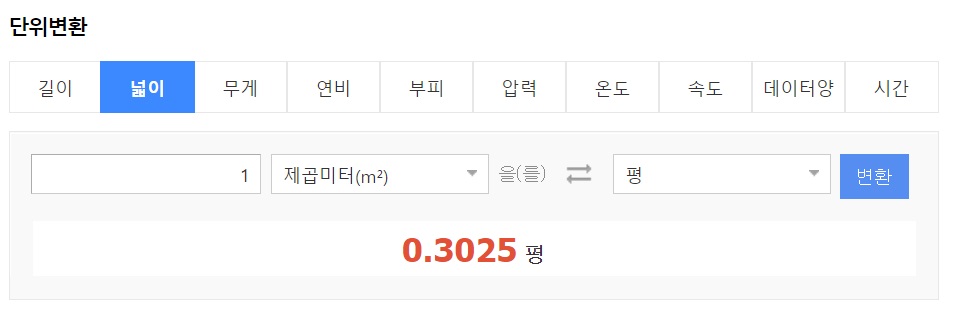 1평 = 3.305785m2, 1m2 = 약 0.3025평입니다.